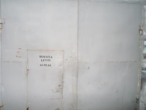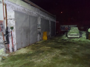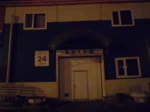 Тоже закрытые ворота, на этот раз - на замок. Каких-либо способов связи, вроде кнопки вызова, или телефонов, обнаружить не удалось. Через щель в воротах сделана фотография территории - вполне возможно, что днем это хорошее СТО. Но не круглосуточно.
